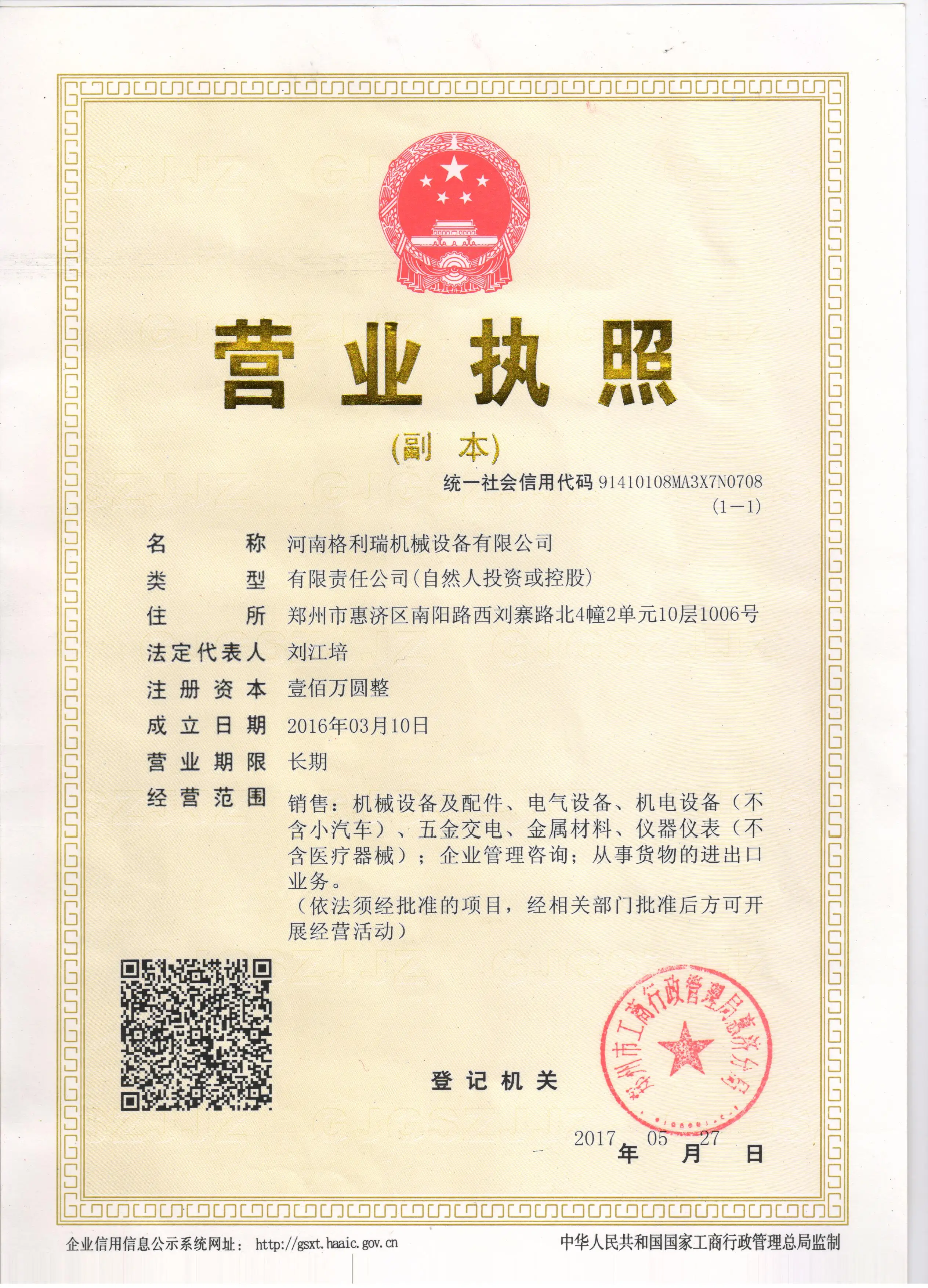 Company Name : Henan Gleery Machinery Equipment Co., Ltd.